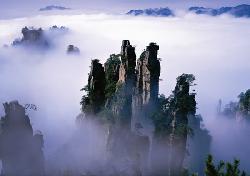 - 張家界景區云霧繚繞,宛如仙境引客